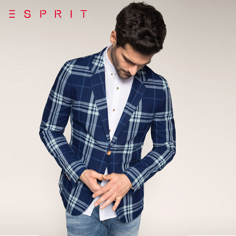 新品ESPRIT男士时尚格纹通勤款西装-055EE2G001C吊牌价1299